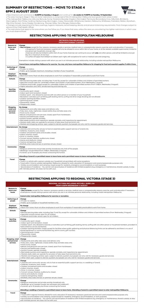 On an almost daily basis an exemption condition is announced and I am one of the first to acknowledge that there will be personal situations which may need attention however, these exemptions create loopholes which can be easily exploited by those in denial or those that just have to be anti the establishment. Unfortunately Vic seems to have attracted a larger proportion of these people.