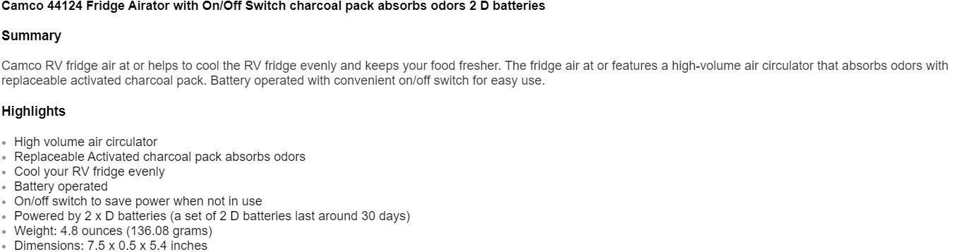 Has 2 x D cell batteries. I was sceptical of the advert it said would last for a month on 2 D cells. The fan spins slowly just enough to circulate the air inside the fridge. Seems to distribute the air so no cold or warm spots. I position it to blow over the internal fins, but it sometimes gets moved around a bit to fit items in better. On our last trip December to April from Perth to Tas and return the batteries did last almost exactly 1 month !! That includes 2 weeks stranded at Coolgardie WA (in 46c temperatures) due to bushfire road closures on the Nullabor. I was going to go the route of placing computer fans inside the external vents, but this works for me. I'll see if I can find the ad and share Edit - found the advert and have attached the blurb
