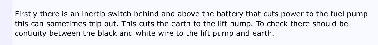 2006 Fiat Ducato 2.8TD Inertia Fuel Switch - could apply to other MH as well: