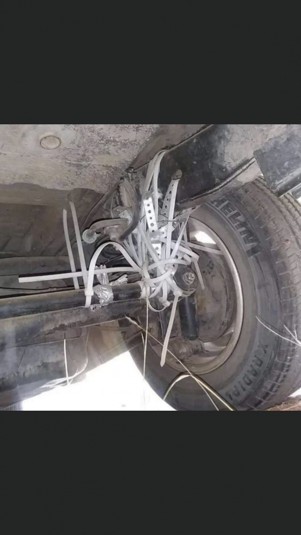 well lets say he probably JUST got home ? or off the road ? Out there at times you gotta do what ya can !! Outback is outback !! Lol in rally days Ive used seat belts to hold suspension to finish !