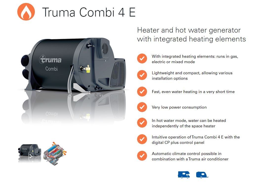 I regret not choosing a Truma with 240V as well as gas because we often have excess solar and can heat the water via the inverter. The new diesel one has a 240V element too, but I deliberately chose a smaller element so as to leave capacity in the inverter for other stuff. We have no external power plug-in capability, only the solar.