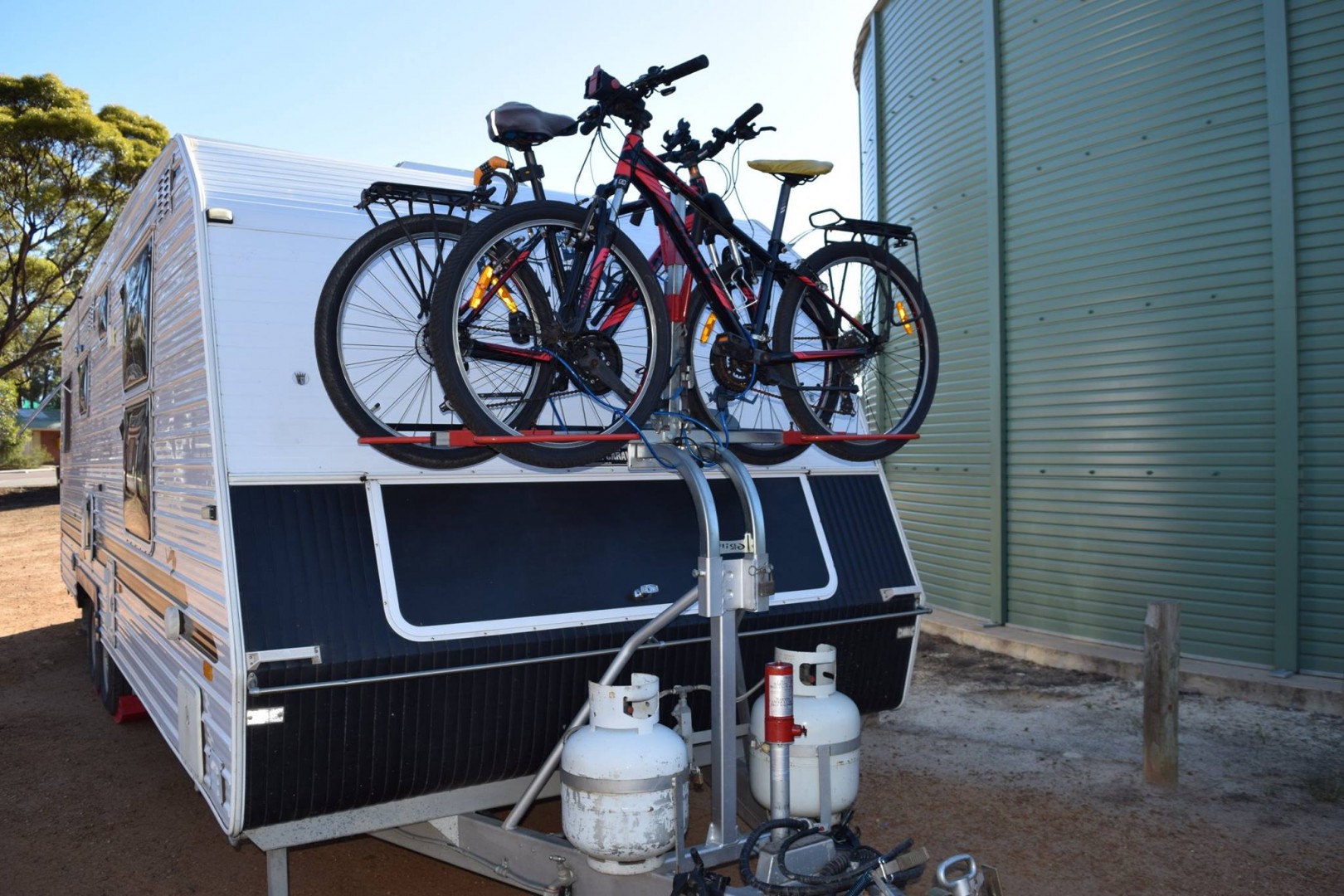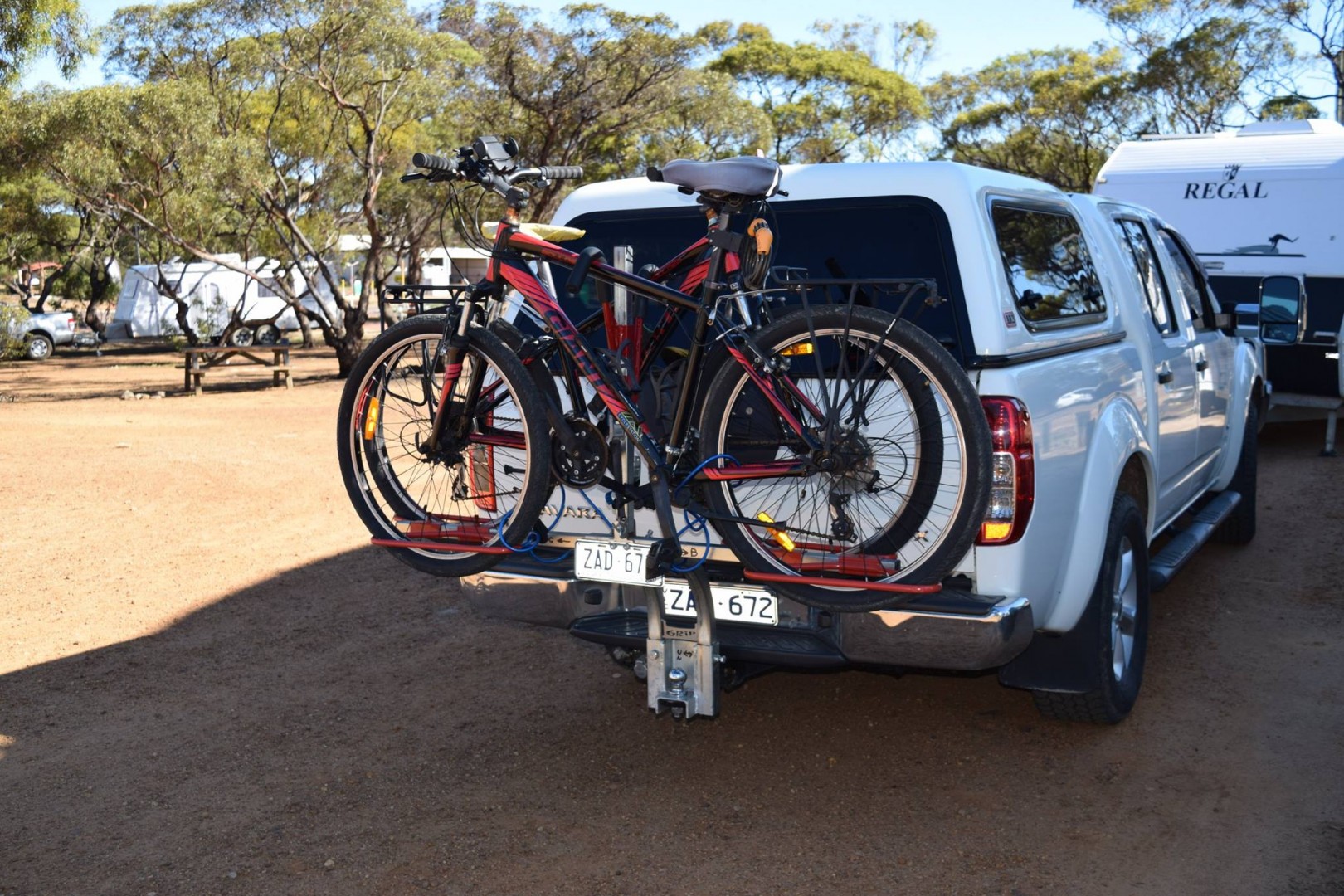 We have a Thule bike rack mounted on the generator and BBQ box on the drawbar .The van is an offroader so is quite high but easy enough to put lighter bikes on and is out of the majority of the dust and mud The box is heavy duty and it does put more weight on your draw bar.