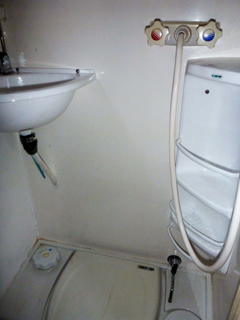 My question is regarding the Toyota coaster layout with the shower over the toilet and no hand basin and having a glass door....is this a problem...how does one have a wash on the morning and how does one use the toilet after I have had a shower(wet feet)...am I missing something here or is the shower/toilet combo an ornament