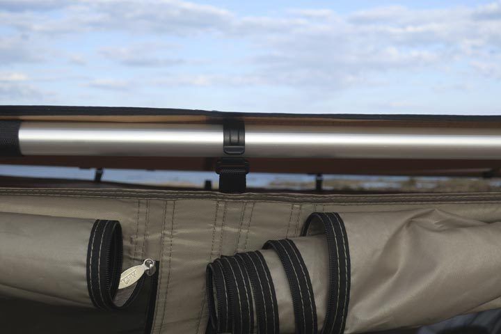 My awning is for a car but the heat issues are the same. Get the lightest fabric you can to reflect the sunss energy.