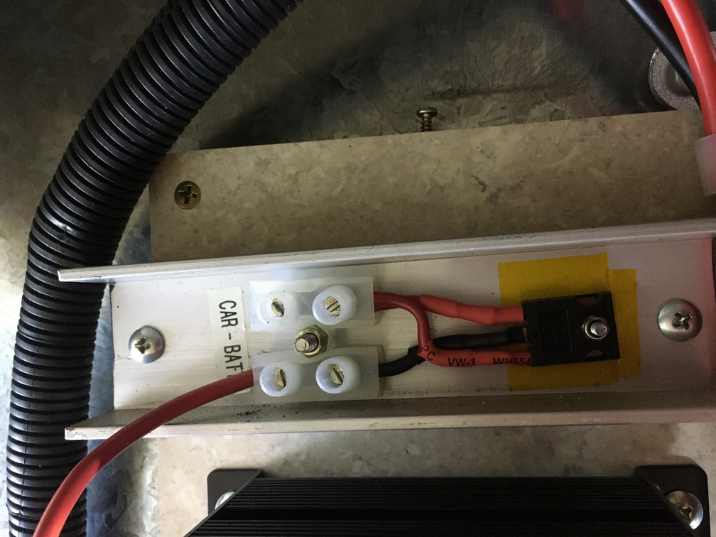 Regarding the device in the picture, when the van is connected to the car, the + 12v runs from the car to the 'car' terminal and thru the diode thing and then to the battery. Note the burnt terminal screw where the cable from the car (via anderson plug) connected (cable was black as well). Maybe dorian is right.