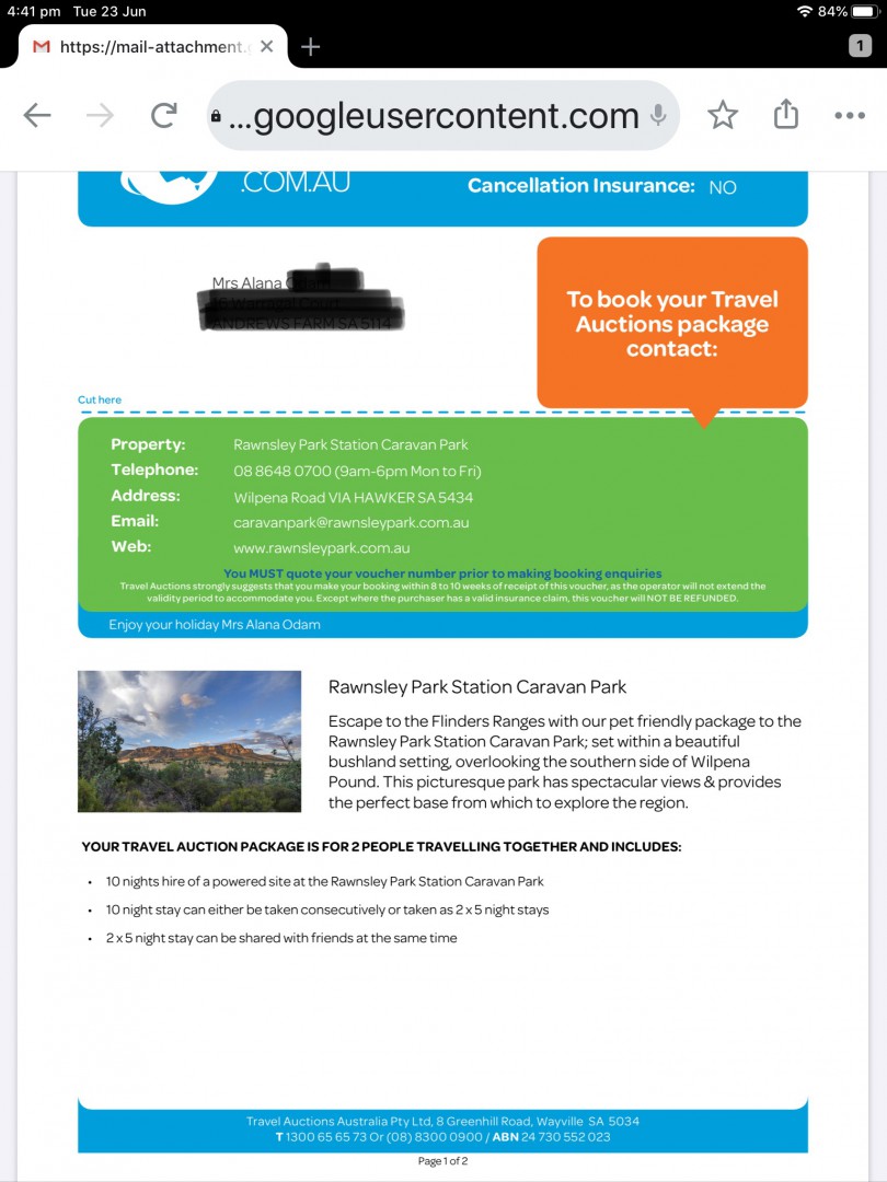 5 nights on a powered site at Rawnsley Park in the Flinders Ranges