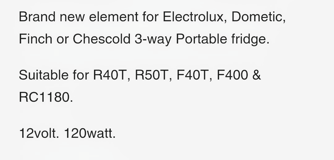 A replacement element for the Finch fridge seems to be 120 watts which from my understanding run pretty much continuously.