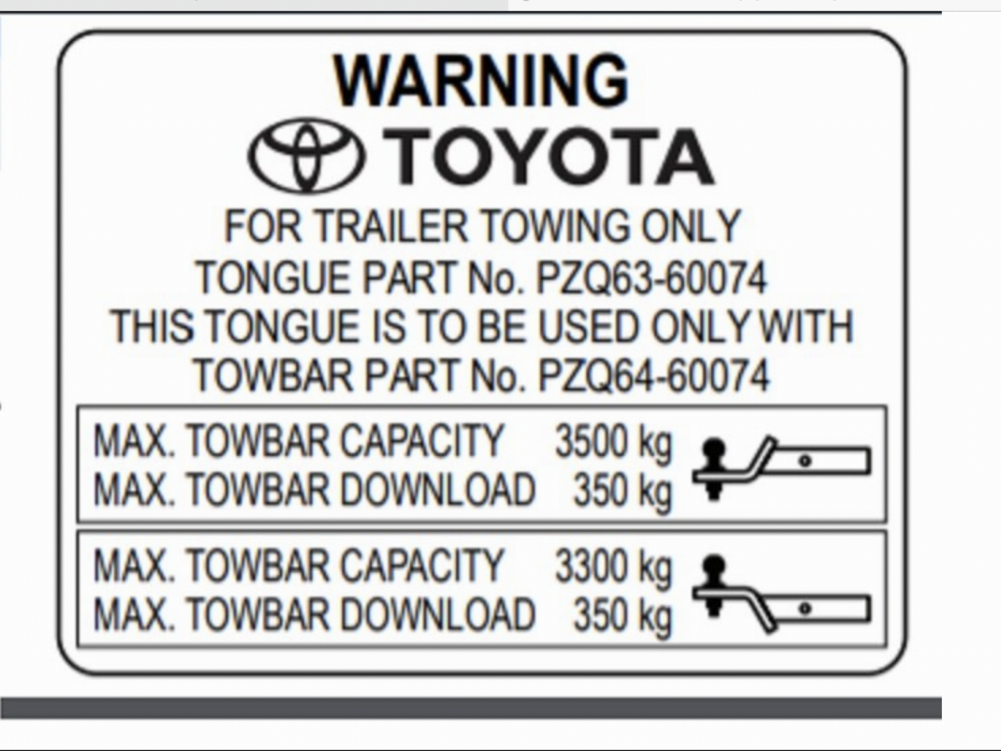 The tongue PZQ63-60074 suits the 76 - 79 series tow bar and is not the tongue recommended by Toyota for the 200 series.