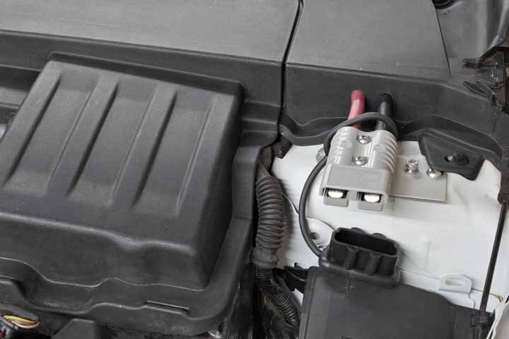 Stick an Anderson plug next to the car's battery. Much better than a 12v cigarette socket!