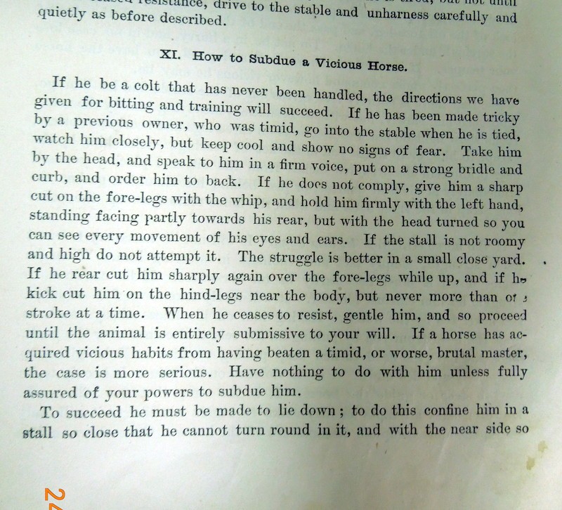I think if a horse was treated in that way, he would have every right to give you a flogging, and have seen a few horses kick people in the head and body, for being treated badly.