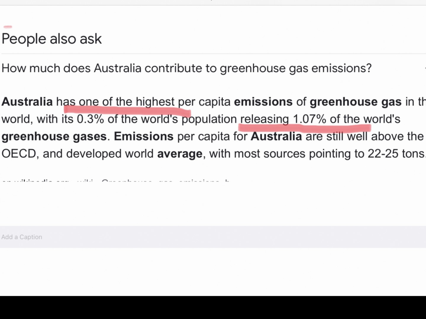 Not quite true,but we certainly are up there.However,China has a population 56 times that of Australia,and India's population is 55 times that of Australia.THESE are the countries that should perhaps be looking to take action,as trying to eliminate Australia's 1.07% contribution is akin to piddling into a bush fire.Climate change is a big con job,as we continue to experience that which is no more than a continuation of a weather cycle that has been around for millions of years. I believe that Australia contributes around 32% to the world's coal exports.....do we stop exporting coal altogether? Kids waste hours at school being taught this garbage while their numeracy and literary skills plummet,along with their social skills and manners. Sadly, these semi-literates are likely to be our future leaders.Very sad.Cheers