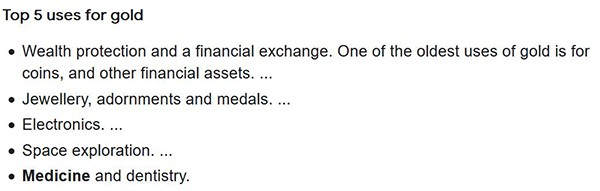 But I suspect its value is so high because the vast majority of the world's gold is held as a financial asset rather than because of its industrial worth unlike say tantalum and similar.