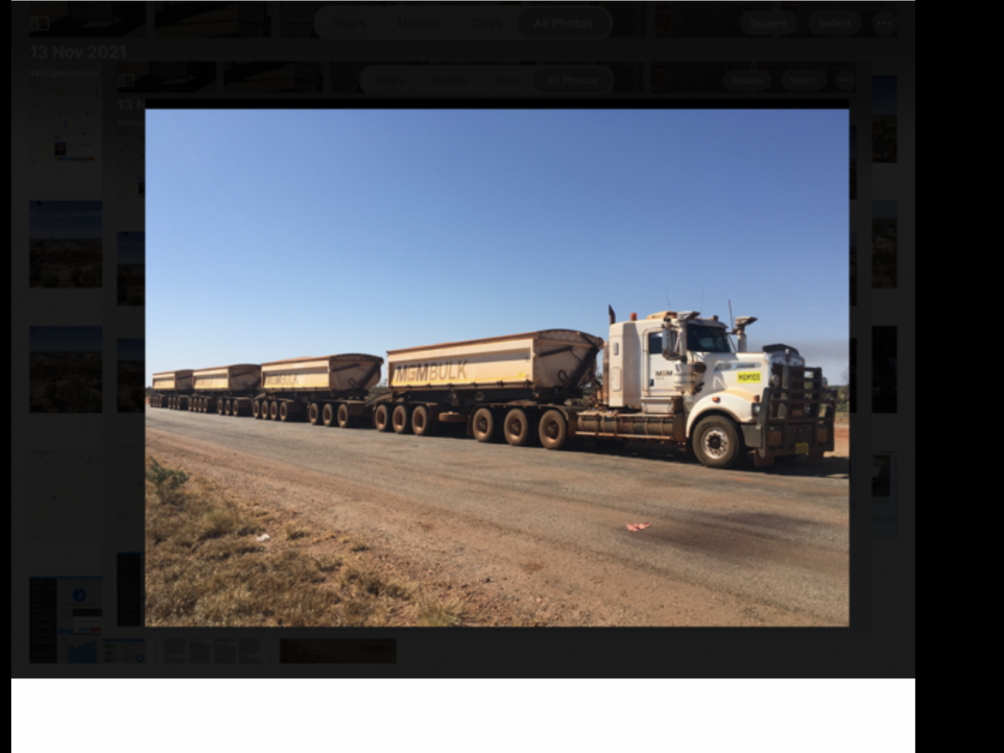 I had seen the big trains out in the paddocks before, never on the roads.
