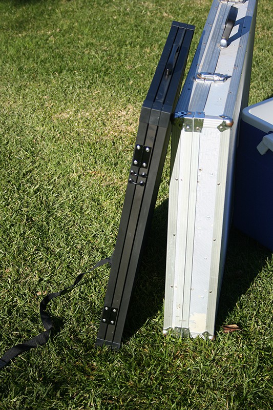 I started with a panel in an aluminum case,quite heavy went to a blanket, too cumbersome.