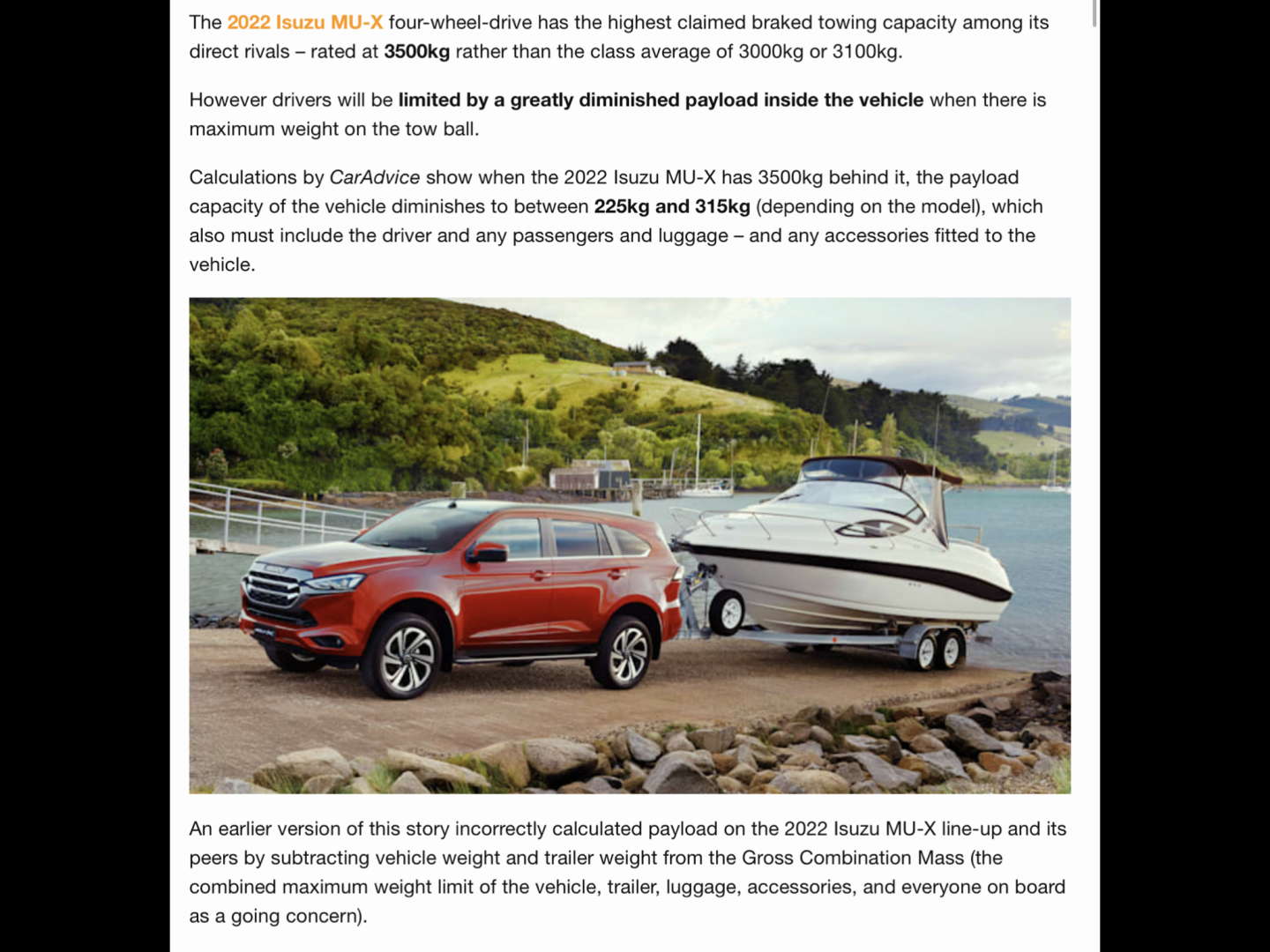 I thought the Isuzu MUX was 3000kg Max Tow Capacity with a 300kg Tow Ball weight.