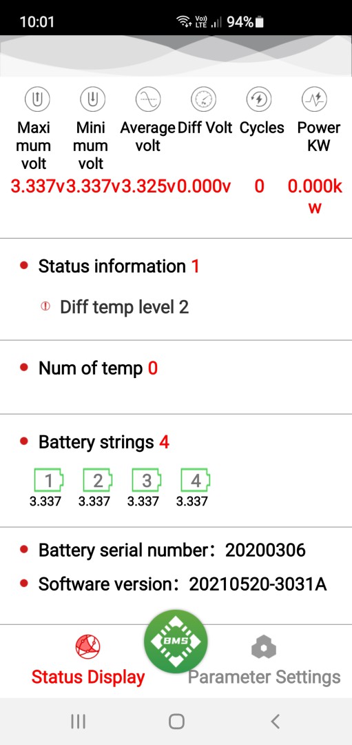 This is the test data supplied by the company I purchased them from. If all goes well I will then place another order for 8 more cells and 2 BMS's to assemble another 2 batteries and run them all in parallel.