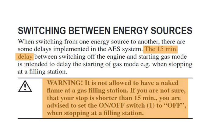 There is a safety delay of 15 min. before switching from 12volt to gas.