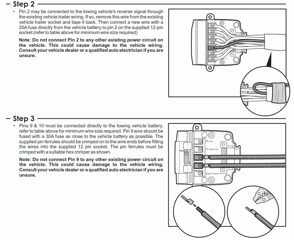 After looking at my 12pin it appears to be factory standard with pin 9 (pink) & pin 10 (white) setup for fridge supply, am I correct ? Is there a wiring diagram available ?