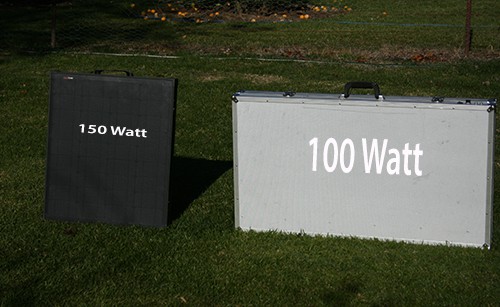 We went from a heavy 100 Watt folding aluminum case type panel to a light weight 150 Watt. "kickass" panel.