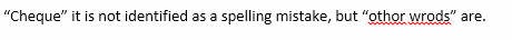 As for the word "cheque" not in the spell checker, it sounds like you are using US English language in the PC rather than Australian or British English (as Dorian just said). Here is a sentence I typed, with a couple of spelling mistakes to show the spell checker is working: