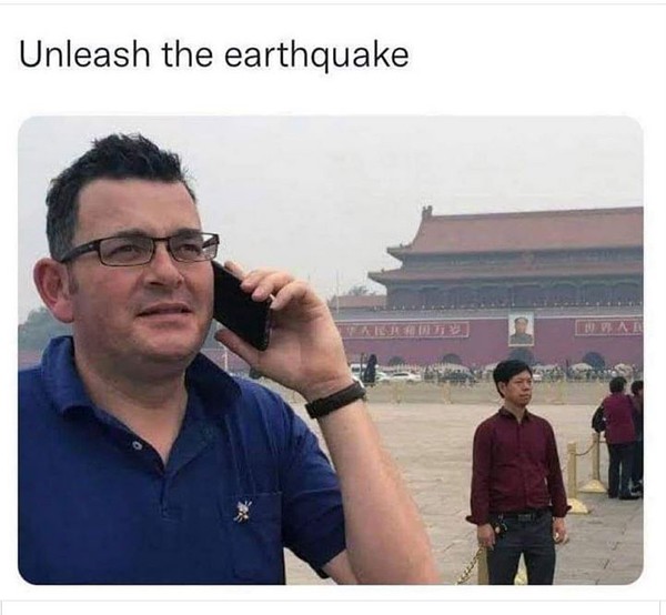 Same here, sitting on the dunny compenplating the world's problems and the house shook for about 30 seconds. By the time I realised it was an earthquake and that I should remove myself it was all over. No damage down our way, outer southeastern suburbs, but some building damage in Melbourne. Melbourne, don't you love it. Locked down, locked out, locked up, anarchy reigning, and now an earthquake. Maybe someone is trying to tell us something.