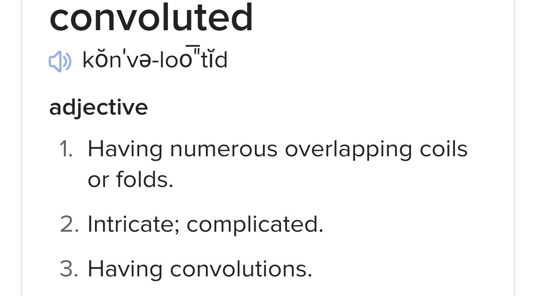 "A man's gotta know his limitations." I never use words unless I understand the meaning. I have attached the definition of both convoluted and reason FYI. It's very clear that my post is far from convoluted but is stepped out, reasoned, logical and for most easy to understand. If unsure always refer to a dictionary. It is also clear that the OP is at least misleading and lacks any valid evidence.