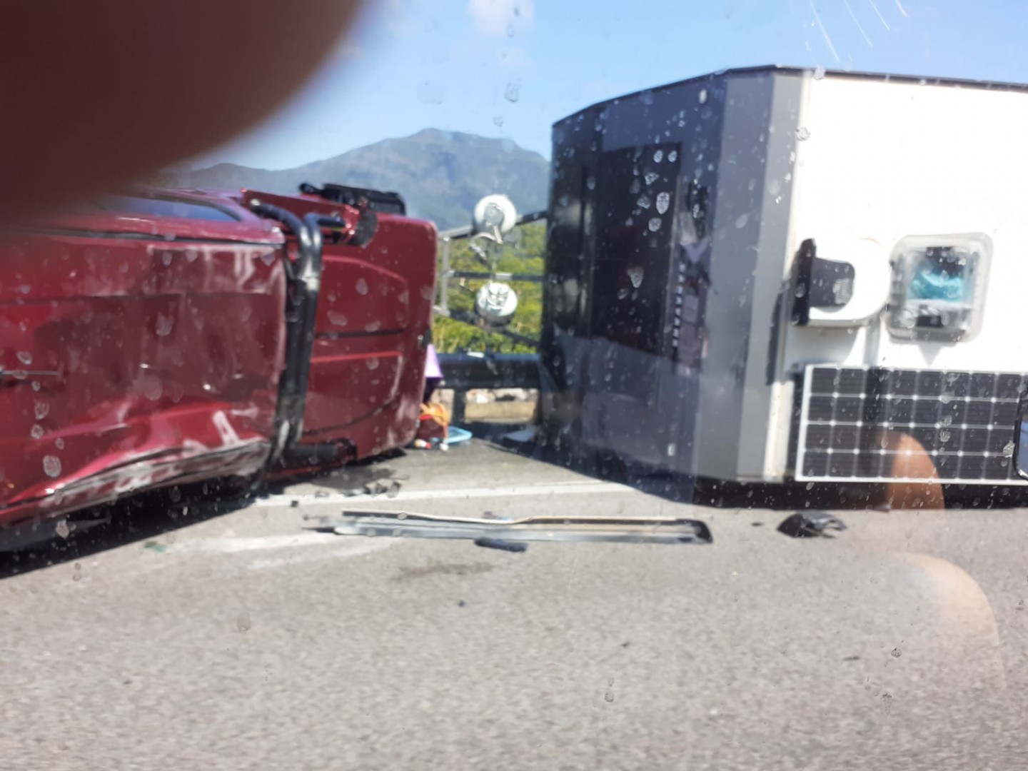Yes i dont know how it happened i heard it on the UHF as we got closer. I did not see the event. But i see the roof is severaly scratched so it looks it was a complete roll over. Maybe someone might have dashcam. Cheers Stewart
