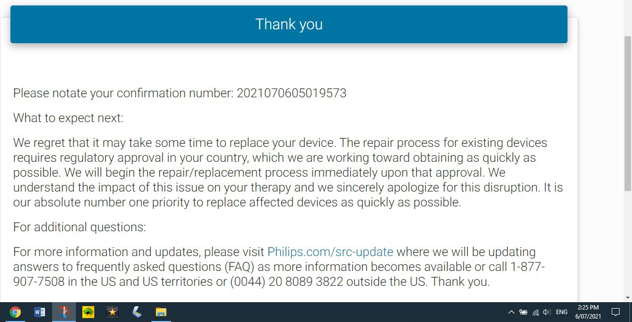 Just for a bit of an update to this tread, after a long wait I received my replacement CPAP machine from philips today 8/12 /21. Hopefully no more problems. Landy
