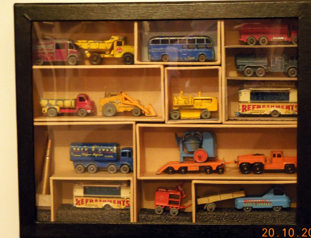 I have a glass cupboard full of John Deere, Allis Chalmers, Ferguson and Ford tractors ....from 1/16 scale down to large matchbox size...oh...and a JD header and a set of JD offsets as well...cuppla thousand bux or more at todays prices. Had nearly all of them when my boys were little....and they were allowed to play with them under strict supervision....both are nearing their forties now.