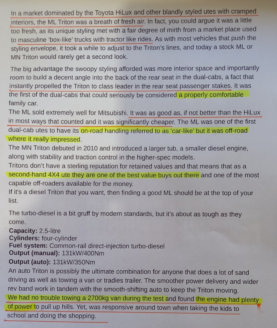 Not sure what this has to do with the LC300,but whatever.Bit pressed for time today,so I have highlighted a couple of salient points.As a family CAR they are certainly a nice vehicle,and great for poor tradies to tow their trailers,or Grandad to run a bit of rubbish to the tip.But when it comes to heavy stuff,forget it.Bent chassis.Cheer