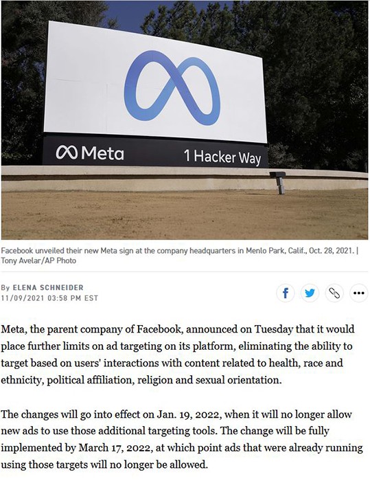 Meta's new rules start on Jan.19 2022.