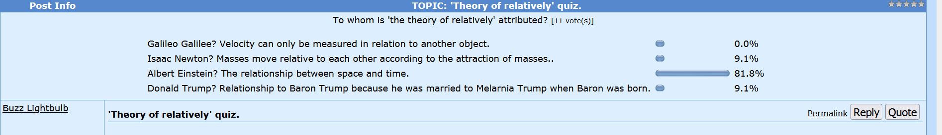 Oh yes. 'relativity' not 'relatively'. (Stupid spell checker.)