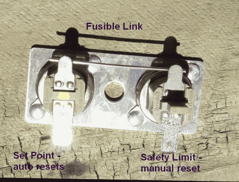 New thermostat required, so I looked at prices online - $110 from Caravans Plus, $50 - $80 direct from the US. What ??? >$100 for a bi-metallic switch ? Ridiculous. I needed to look into this to see where the gold plating is. So I unplugged the heater, took off the gas burner assembly and the thermostat cover and guess what; 2 bog standard, 1/2", 301 style thermostats, joined by a piece of fuse wire, riveted to a small piece of stainless steel. Total cost to the manufacturer <$5.