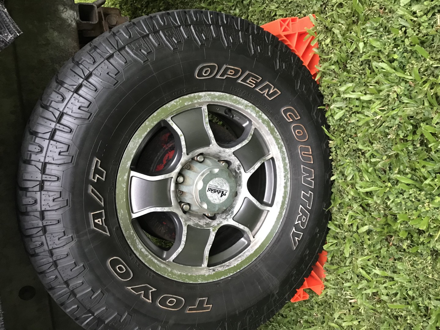 They are 265/75R16. Going to 285/75 or 305/75 would reduce pressures usefully.