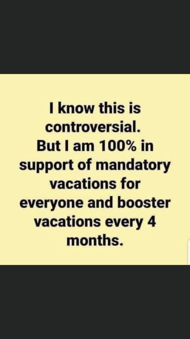 I voted for mandatory vacations but unfortunately the government is very slow with its uptake of the scheme.