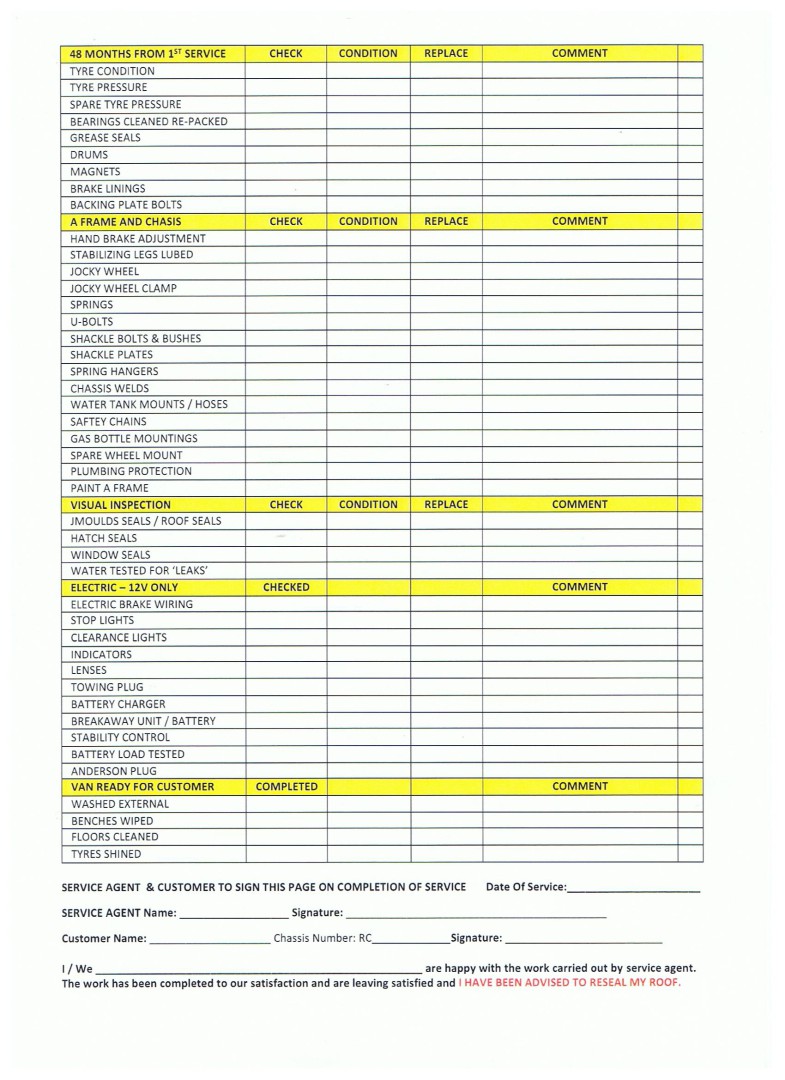 We have made an offer on a used van subject to it passing a 'Pre Sale Service Check List'. It has been 12 months since it has been in the workshop.