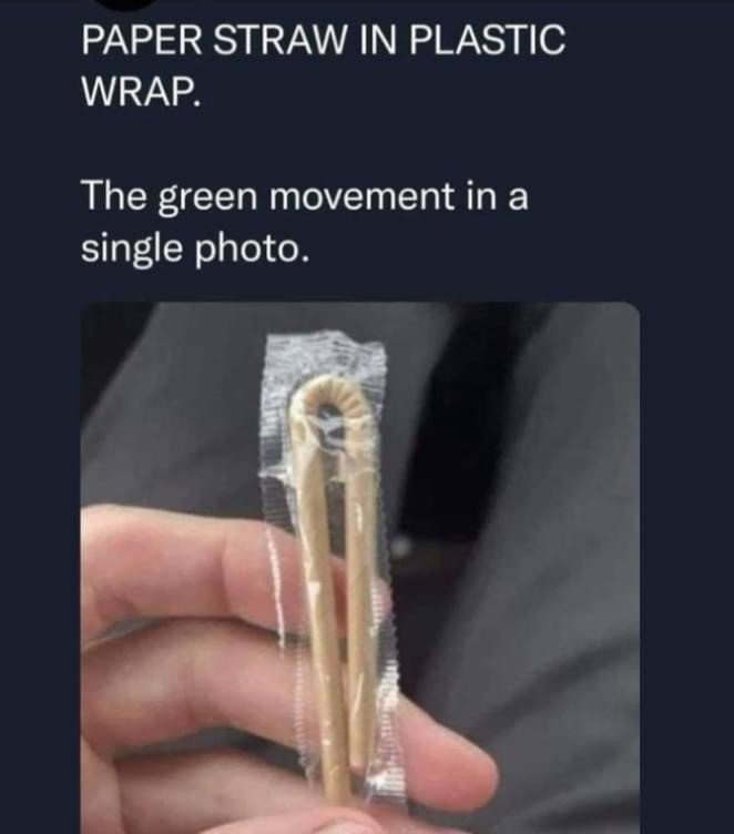Why are plastic straws banned when the lid for the cardboard container is a plastic dome with a hole for the straw to go thru?