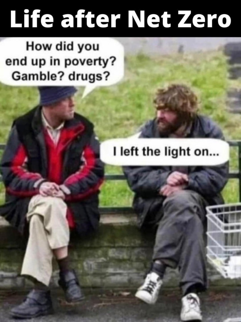 We could easily opt out of this impossible situation of nett zero for our country and let the big boys ( China Russia India USA ) develop a way that doesnt cripple our very existence and then move toward more renewables when they actually work in providing for our power requirements.