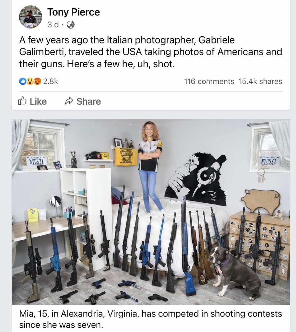 Not sure how anyone can actually go into and bat for the situation in America with their gun laws or lack of!!! Those pictures, if true, sum up the attitude in America And they wonder why kids are being killed in schools Have you seen the stats for people killed this year in multiple shootings, scary I just wished they collected spoons Ian5