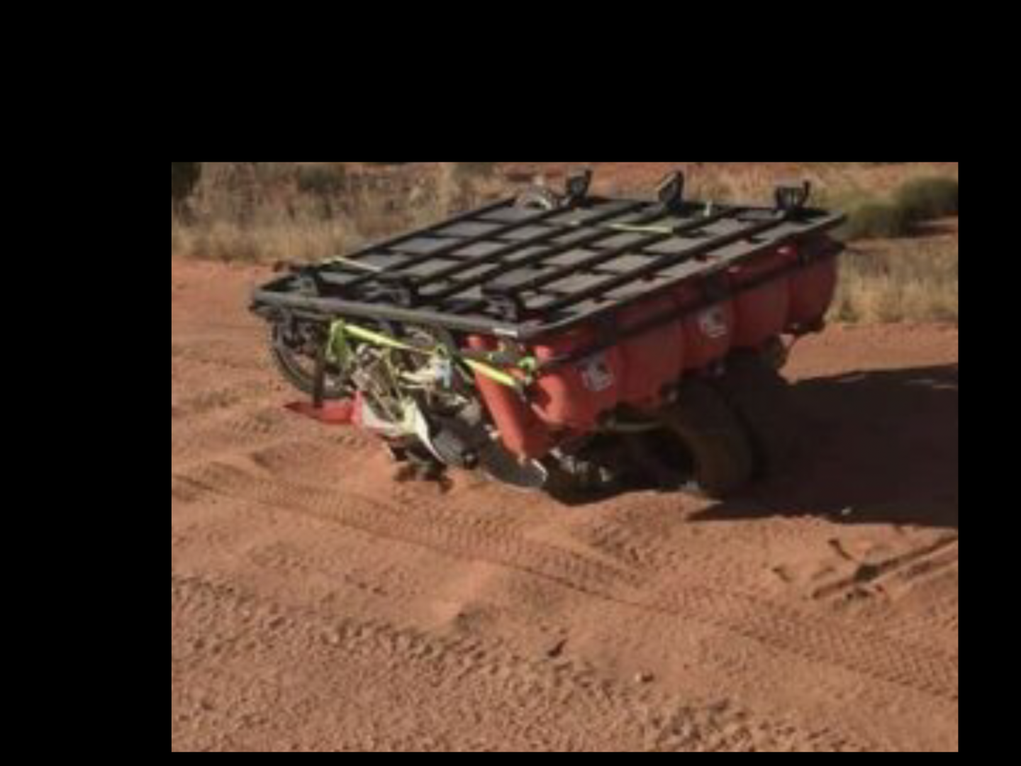 Thankyou for your concern about my safety, but I am well aware of the physics involved when there is a high centre of gravity. However, you no doubt would understand that 70kg on the well-built canopy roof of a 3600kg car would be of little concern? All other added weight is stored safely on or under the false-floor tray while there is 120 litres of water in tanks directly behind the cab and under the false floor that sits above the 6 slide-out toolboxes. There also are another 3x20 litre drums on their sides at the rear under the false floor if needed, but they are yet to be filled. Because the van has hot water supplied by the diesel heater, this poly tank is used only when the van is not with me, so that when I need hot water I simply pump water from the two tanks behind the cab up into the poly tank. Tanks, bladders or other containers on the tray no doubt suit some, but very hard to heat water there, and useless for showers without extra pumps etc. Keep it simple. You might be interested in these overloaded roofracks? The Pajero's load would be 150+kg while the I'd hate to think what was the load on the Patrol? Whatever it was, the Patrol seems to have bucked it off? They certainly would make the cars stupidly top-heavy, but my setup is of little concern. Cheers