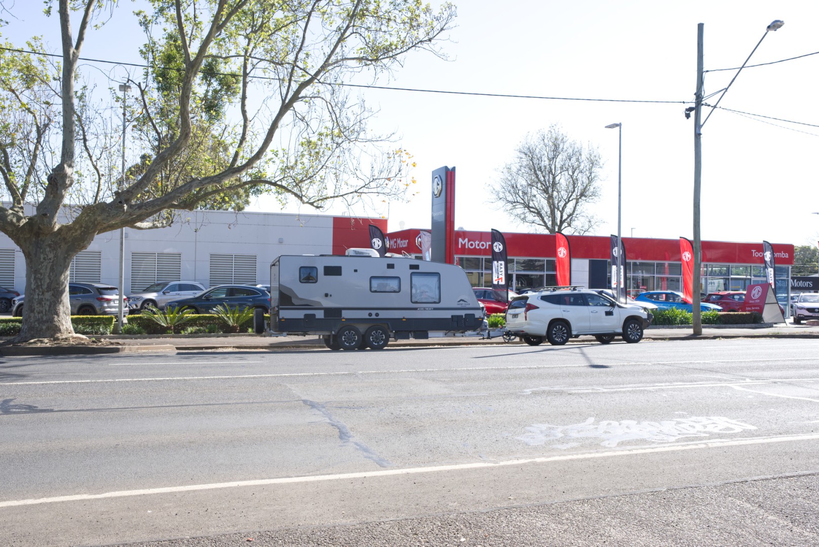 On Tuesday I needed to call into CameraHouse in Toowoomba. CameraHouse is located in a busy street but a few blocks up the street there is parallel street parking so in order to get there early enough to claim a parking place for my car and van I connected the tug to the van the Monday night and just needed to disconnect the power and water etc in the Morning.