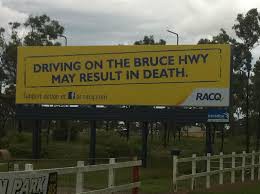 I drove north on the Bruce Highway from the Proserpine Airport intersection and there is a new billboard sign put up directed at state and fed govts and the condition of the Bruce Highway.