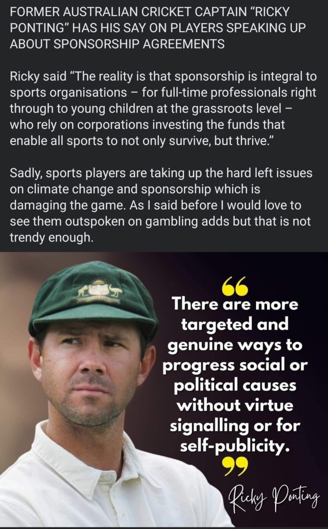 But lets move onto cricket, and our carbon neutral national (mens) captain Pat Cummins, insistent that hes no longer comfortable having the Australian teams brand associated with a company with such a flagrant disregard for the environment.