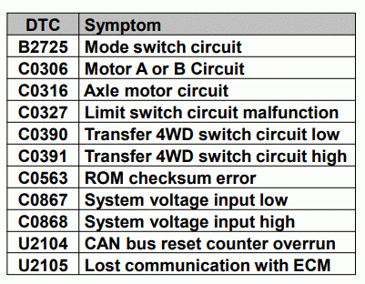 The vehicle does work in both high and low range 4x4 but instantly throughs faults and warnings. These simply go after turning the ignition off then back on.