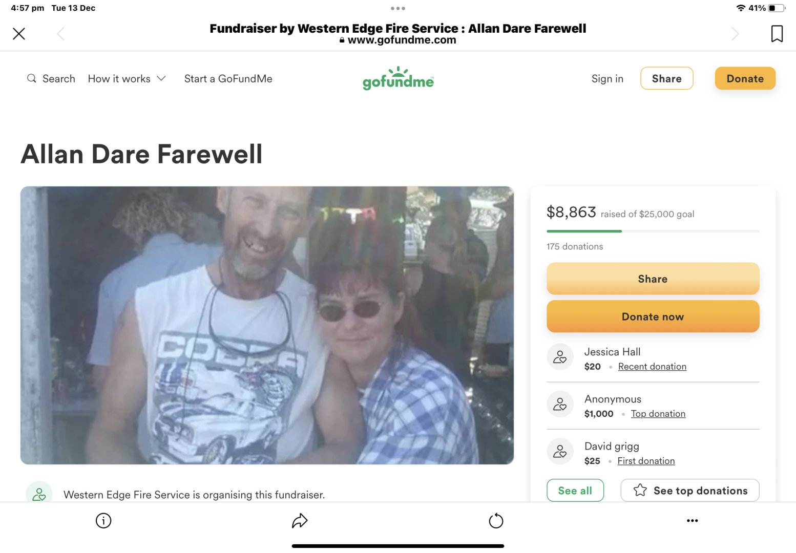 To those interested, there is also a * go fund me page* to help the wife and family of the neighbour who was tragically shot dead because he went to the property to check the fire that the perpetrators lit in the attempt to flush the woman police officer out of the bush.