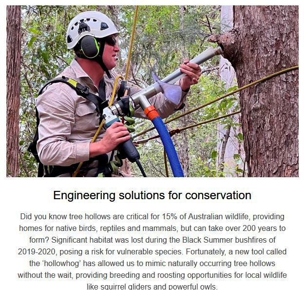 This article might interest you. N.S.W. National Parks has a new tool for creating tree hollows for nesting birds.