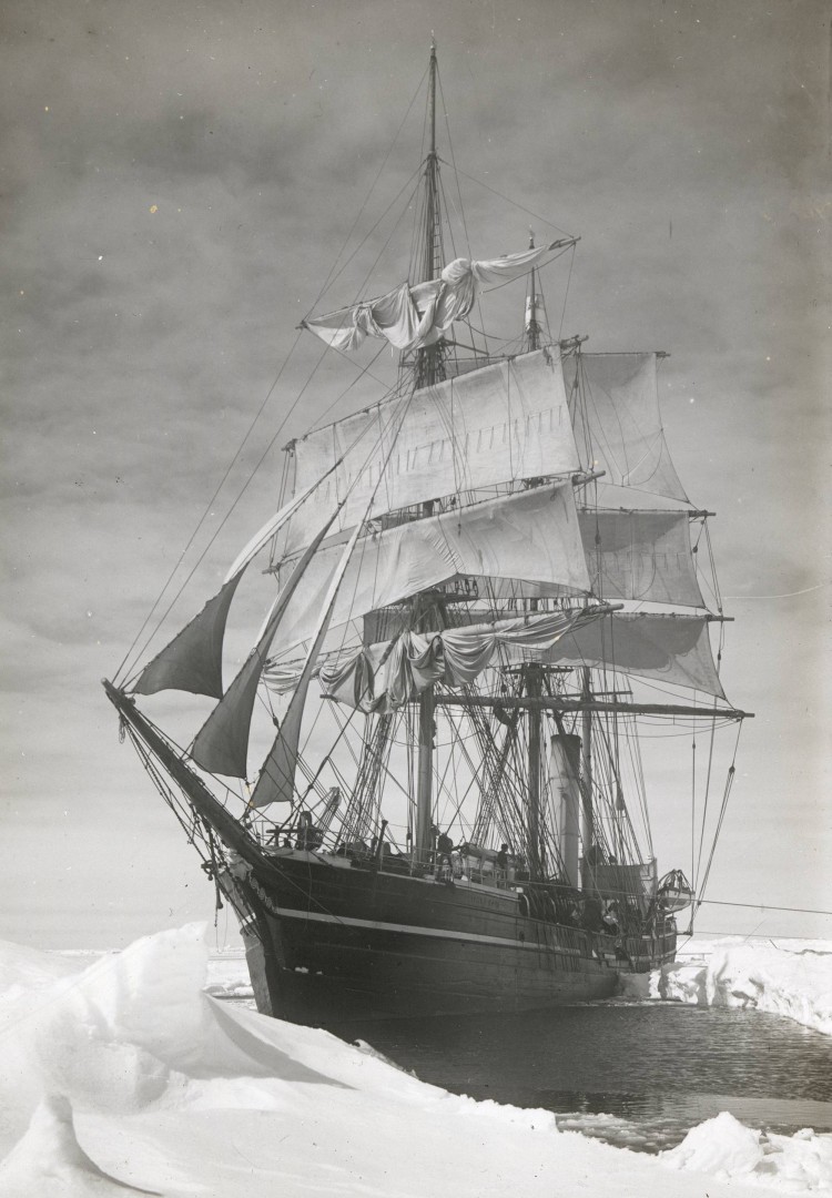 To make ripples like that in a relatively short space the wind must be at least 10-15 knots. So, potential damage to the rudder as it bumps into the ice. Yet nobody appears to be working the sails. Puzzling.