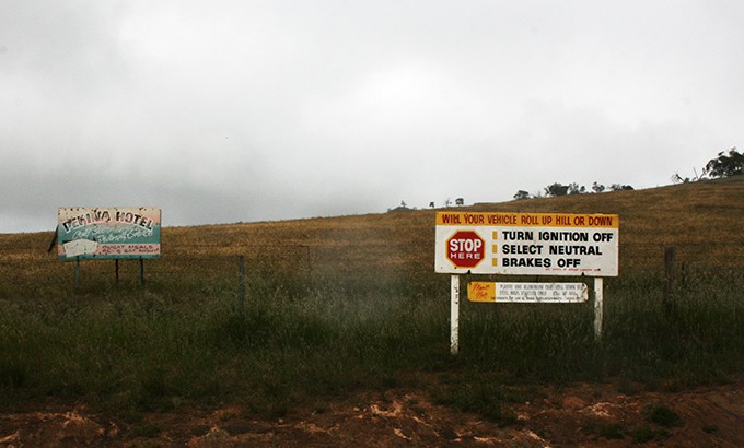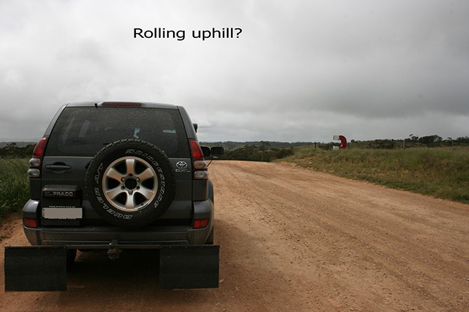 Stop your car,turn off motor,release the handbrake, and you start what looks like you are rolling uphill.