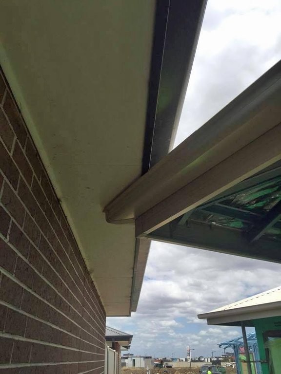 Look at the fence line and see the overhang of the eaves all the way down.