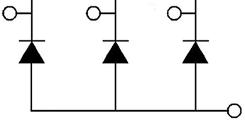 The heatsink would be the common anode terminal for all three diodes, whereas the studs would be the individual cathodes.
